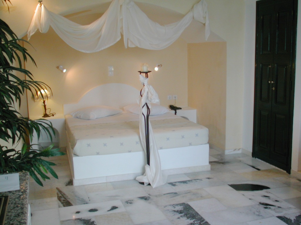 着いてみてビックリ!「サントリーニ島のホテル」のイメージどおり!今までの旅行では(一人旅が多かったので当然ですが)泊まったことのないロマンチックな雰囲気!もちろんエーゲ海の絶景に面しています。