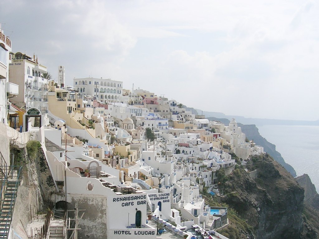 タクシーステーションから海側を目指して、細い小道を進んでいくと、断崖にびっしりと白い壁の建物が並んでいる景色を見ることができました。