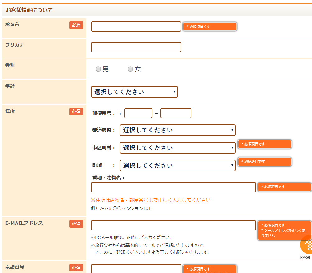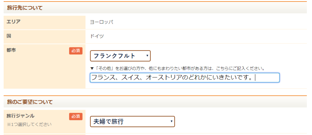 旅の希望を記入し終わったら、名前や住所、電話番号などの情報を入力していきましょう。